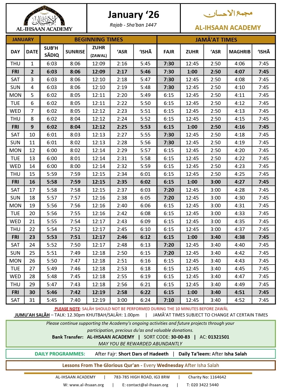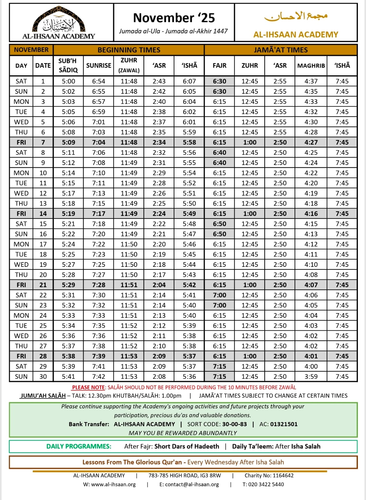 Al-Ihsaan Academy is a UK registered charity based in London.