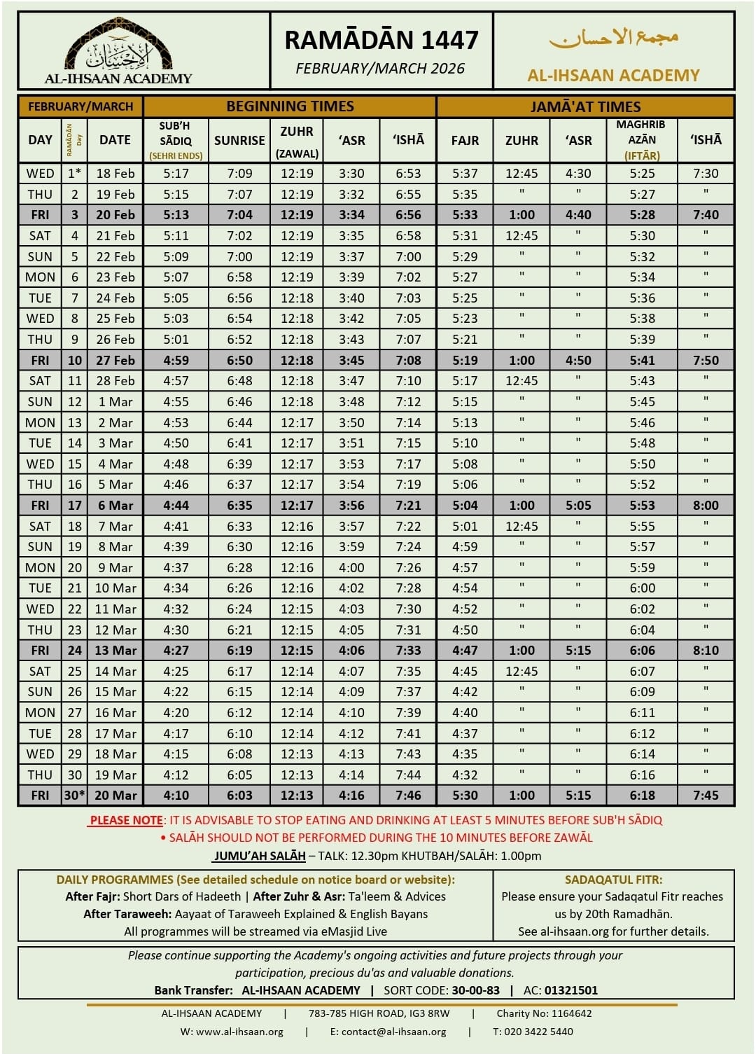 Al-Ihsaan Academy is a UK registered charity based in London. Charity No. 1164642